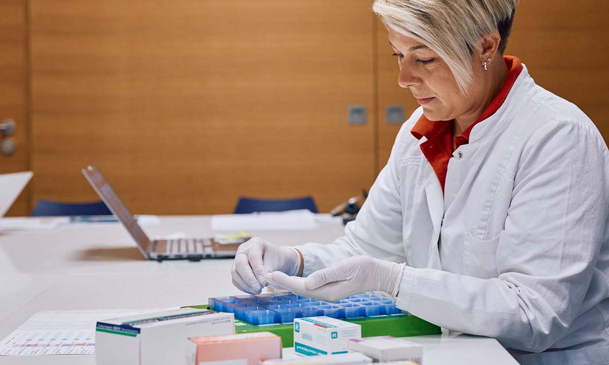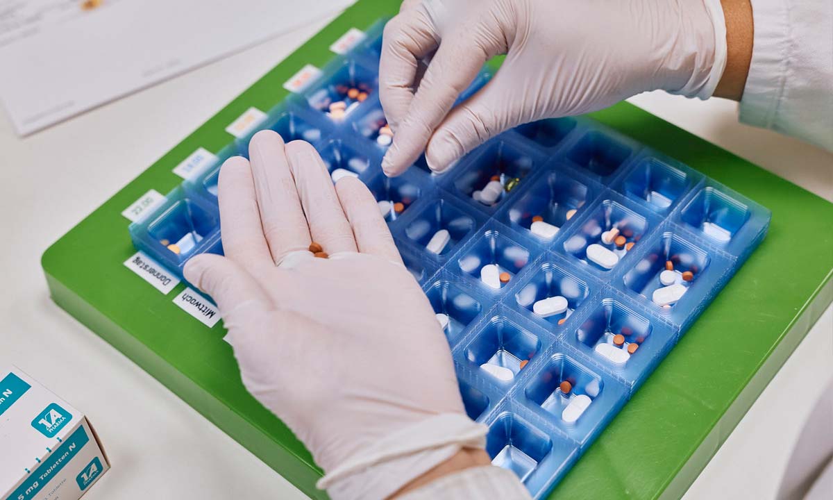 Zu jeder optimalen Therapie gehört die zuverlässige Einnahme. Gerade bei älteren und alten Menschen ist diese manchmal nur sehr unzureichend garantiert. Wir bieten die wochenweise Portionierung sämtlicher regelmäßig einzunehmender Arzneimittel in fester Form (z. B. Kapseln, Tabletten) in übersichtlichen Blistern an und liefern diese auf Wunsch auch frei Haus. Darüber hinaus übernehmen wir mit geeigneten Computerprogrammen auch die komplette Arzneimittelverwaltung, das heißt, wir sorgen in Zusammenarbeit mit den Ärzten für den Arzneimittelnachschub und berücksichtigen dabei die Urlaubszeiten der Ärzte. Auf jeden Fall behalten die behandelnden Ärzte jederzeit die absolute "Therapiehoheit".